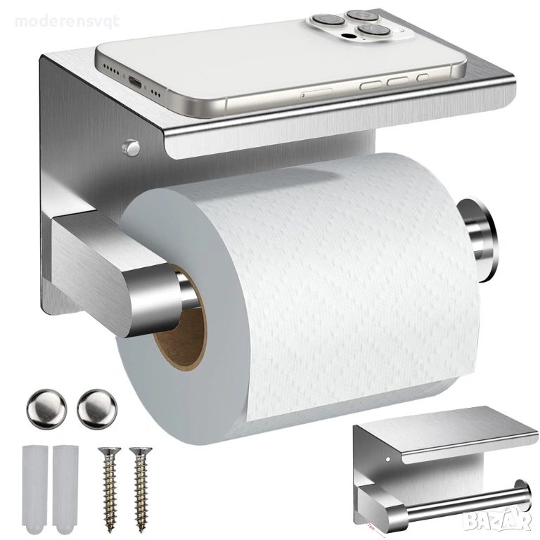 Държачът е снабден с високо функционален рафт, който е идеален като място за поставяне на вашия смартфон, ключове, часовник или резервна ролка хартия. Това е изключително практично решение, особено в малки бани, където всеки сантиметър пространство е от значение. Благодарение на лекия ръб, който предотвратява изплъзване на предмети - телефонът или очилата остават в безопасност, дори при случайно докосване.