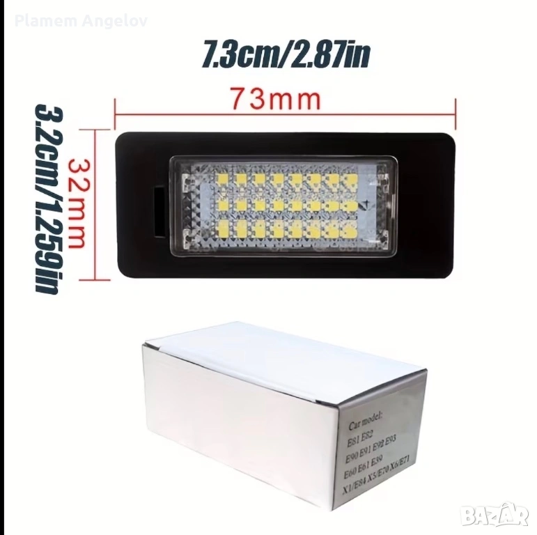Продавам LED плафони за осветление на регистрационен номер за BMW. Комплект 2 броя с ярка бяла светлина (24 LED диода на плафон). Дават модерна визия и светят много по-силно от оригиналните крушки.