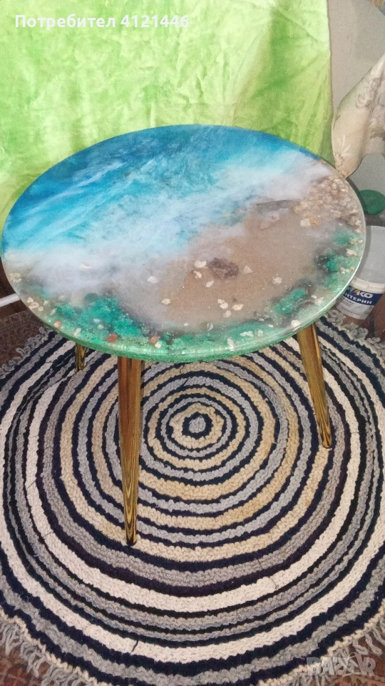 Холна маса от епоксидна смола и природни детайли пресъздаваща морски бряг,внасяща равновесието на природата в дома.