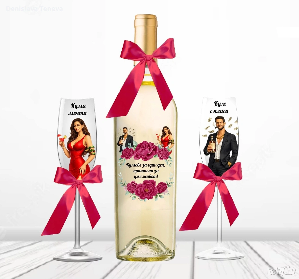 Персонализиран подарък за кумове, който ще отвори сърцата им www.denidream.com Как да благодарим на хората, без които нашият специален ден не би бил същият? Две луксозни персонализирани чаши за вино *Бутилка избрано вино + чаши за кумове - 33,50 евро *Акрилна покана - 10 евро * Детски чаши - 5 евро бр *Кутия - 8 евро * Кумски договор - 8 евро Персонализацията може да бъде: · Вашите имена или тези на кумовете и дата на сватбата · Лично послание Направете този жест още по-специален и им подарите нещо, което ще си поставят у дома и всеки път, когато го видят, ще си спомнят за вашата любов и приятелство! Супер лесна и бърза поръчка. Изцяло персонализиран с техните имена или вашата дата. Ще ги изненада и развълнува! Те ще си го помнят с всяка чаша вино! #подаръкзакумове #кумове #сватбенподарък #персонализираничаши #подаръкзасватба #сватба #българия #handmade #подаръки #поканазакумове #подаръкзакумове #луксозенкомплектзакумове #кутиязакумове #чашизакумове