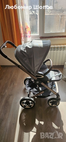 Продавам втора употреба бебешка количка Cybex , сив кош, черно шаси. Подходяща от раждането (пълно легнало положение) до около 4 г. Изключително запазена, лека и маневрена, с големи гуми и здраво окачване.
