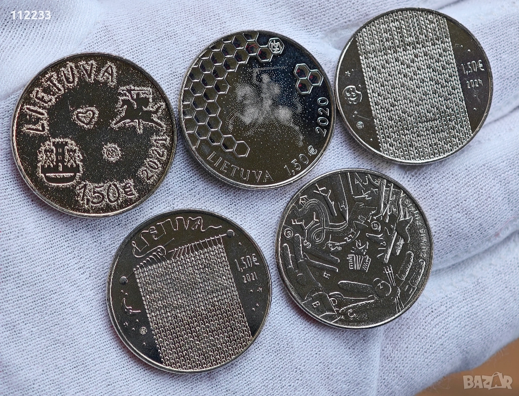 5 монети от 1,5 евро. Нови. Съществуват монети от 1,5 евро, но те не са част от стандартната, ежедневна валута в обращение. Те са специални колекционерски,емитирани предимно от Австрия и Литва. Те са законно платежно средство само в страната, която ги е емитирала.