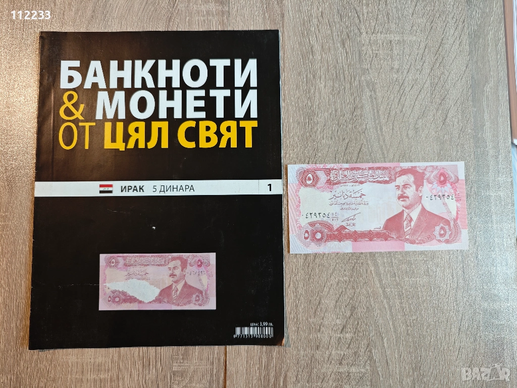 През далечната 2012 година в България се издаваше списание "Банкноти и монети от цял свят". Всеки брой излизаше или с банкнота или с монети от някоя държава.Запазил съм през тези 14 години и сега предлагам първи брой в комплект с нециркулирала банкнота от 5 иракски динара.