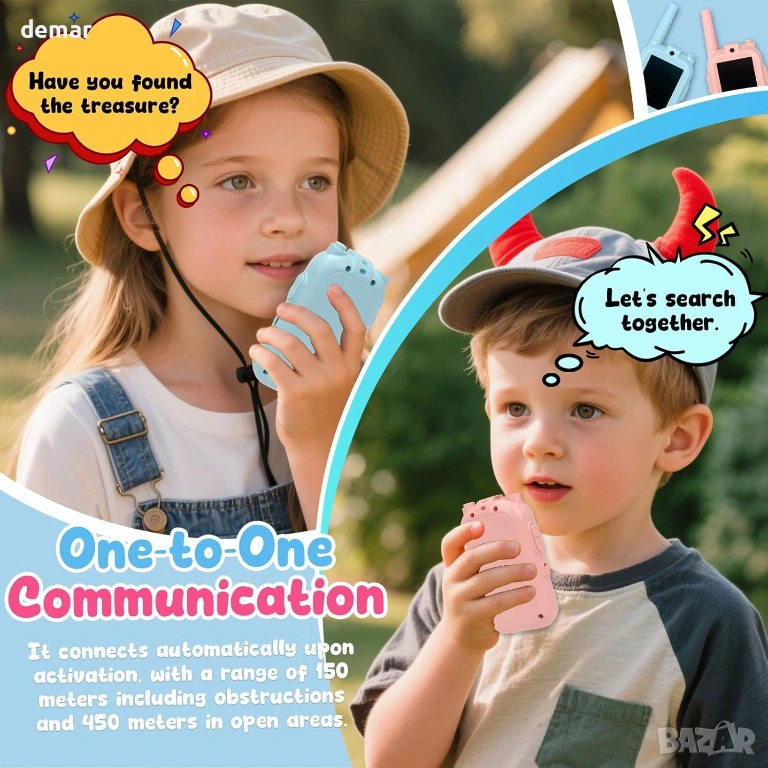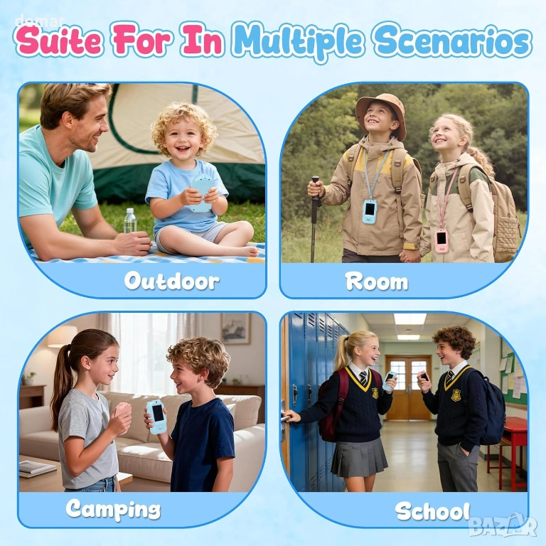 Детските видео уоки-токита разполагат с вграден екран за разговори лице в лице в реално време, комбинирайки ясен звук и видео за интерактивна игра на закрито и на открито до 30 метра на закрито и 300 метра на открито. Проектирани с прости контроли с натискане, интуитивна работа и без изискване за WiFi, те са готови за употреба мигновено и пасват удобно в малките ръце благодарение на лекия, ергономичен и противоплъзгащ дизайн. Забавните режими за смяна на глас (оригинален, дете, робот, извънземен) и игривите видео филтри насърчават креативността и ролевите игри, докато сигурното криптирано сдвояване „един към един“ осигурява лична комуникация. Подходящ за деца на възраст 3 и повече години, този комплект от 2 броя подкрепя въображаеми приключения у дома, в градината или в движение, което го прави ангажиращ и универсален вариант за подарък за различни възрасти и поводи.
