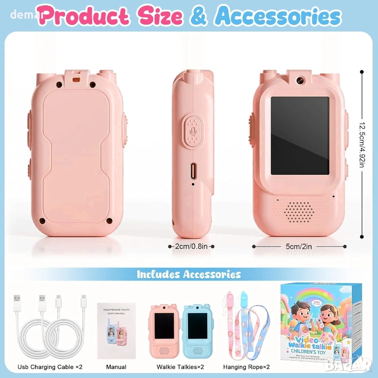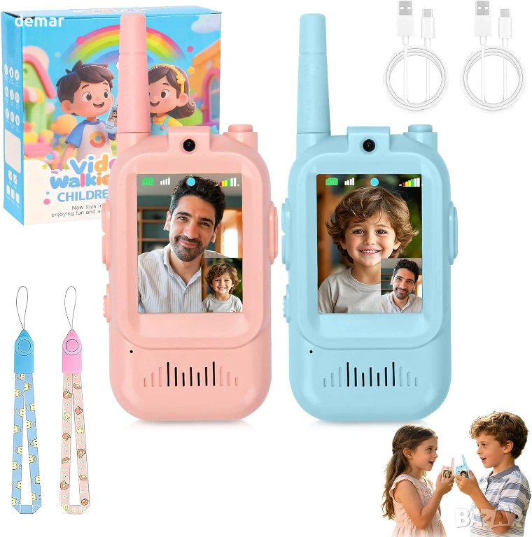 2 бр. видео уоки-токи за деца 3+ години, промяна на гласа, розово и синьо