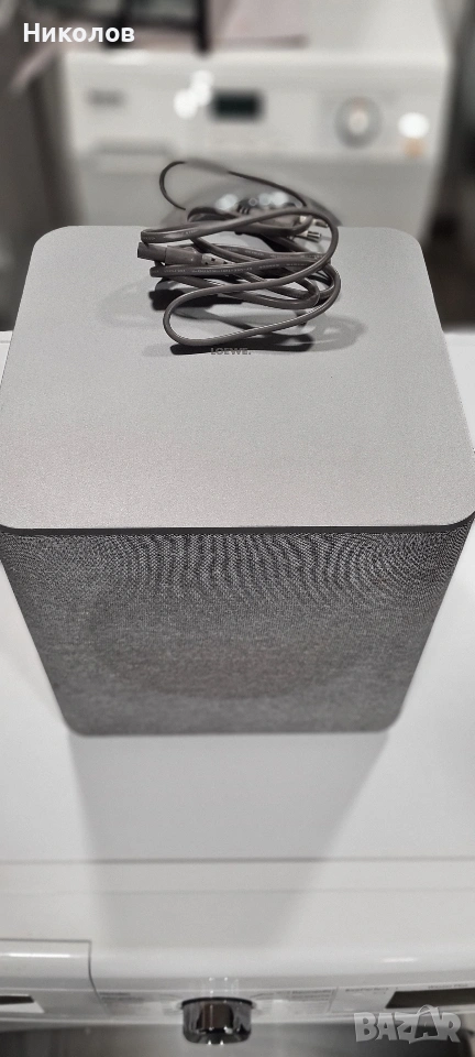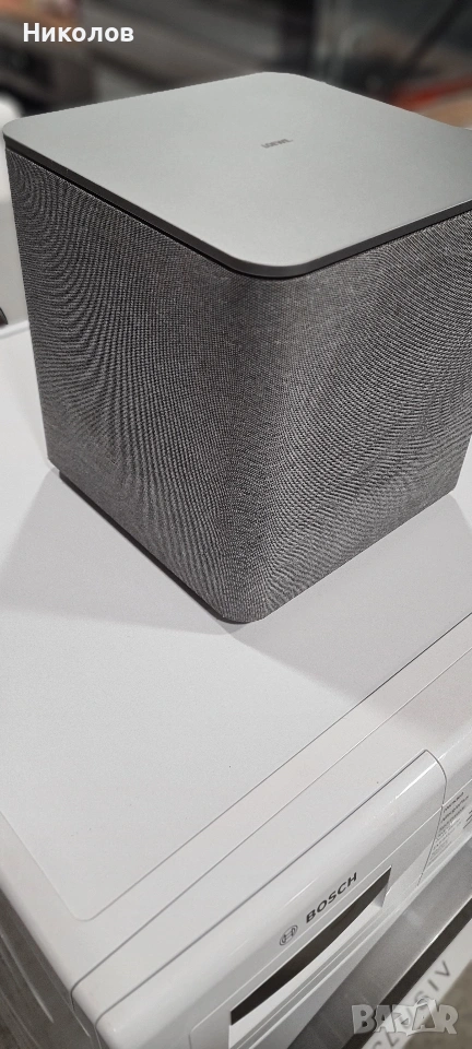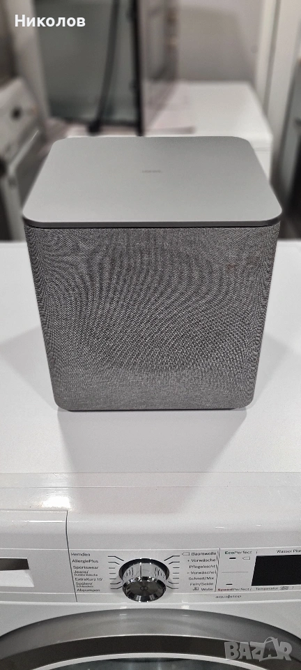 Субуферът Loewe Klang 1 осигурява 300 вата музикална мощност към канала на събуфера. Неговата акустична концепция, базирана на силен, фокусиран бас, включва активен високоговорител и две пасивни диафрагми, което води до изключително интензивни ниски честоти. Това уникално качество на звука е поместено в компактен и отличителен корпус, чиято горна повърхност е изработена от масивен алуминий. Субуферът се слива безпроблемно с всяка стая благодарение на елегантния си черен плат и скритото управление на кабелите. Височините Klang 1 и събуферът Klang 1 функционират и независимо от телевизор или аудио система: лаптоп, смартфон или друг музикален източник може да бъде свързан директно чрез линейния вход. Насладете се на превъзходно качество на звука без допълнително оборудване – дори докато работите. Спецификации на субуфера Loewe Klang 1: Субуфер Тип на субуфера: Активен субуфер RMS мощност на субуфера: 300 W Честотен диапазон на субуфера: 35 - 250 Hz Портове и интерфейси Линеен вход: Да Линени входове (RCA): 1 Характеристики Цвят на продукта: Черен Тегло и размери Ширина на субуфера: 24,1 см Дълбочина на субуфера: 24,1 см Височина на субуфера: 25,8 см Тегло на субуфера: 6,8 кг Съдържание на опаковката Включени кабели: AC захранване