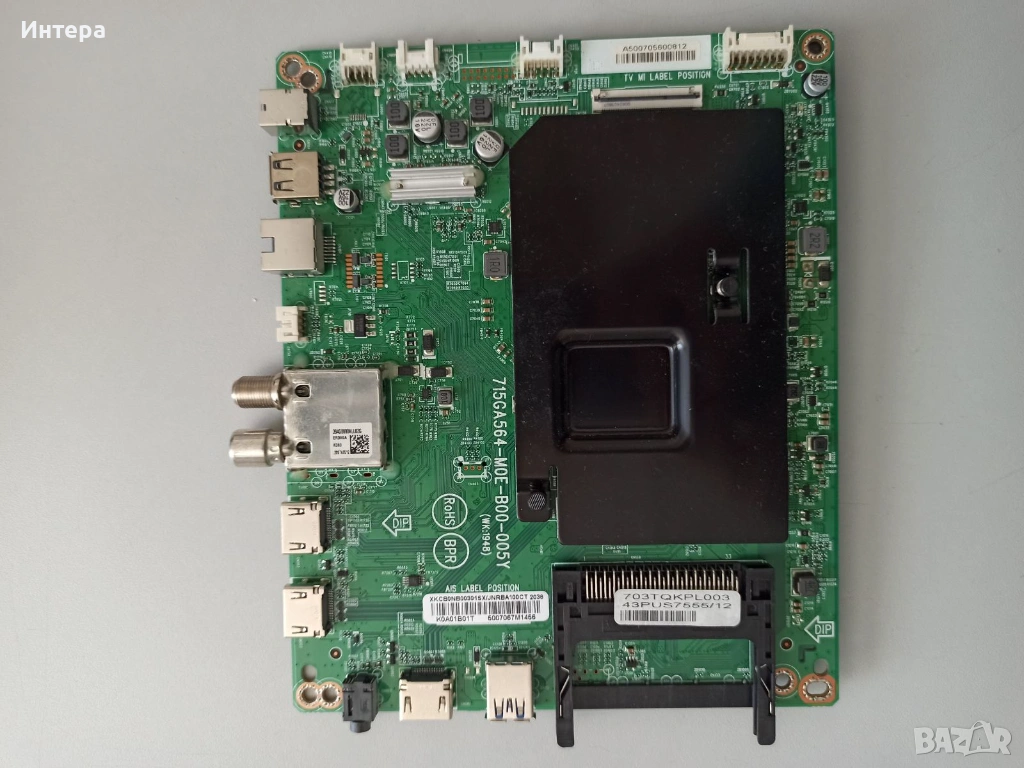 Частите са от телевизор със спукан екран PHILIPS 43PUS7555/12, панел TPT430H3-QUBH10.K REV:SA9P0A