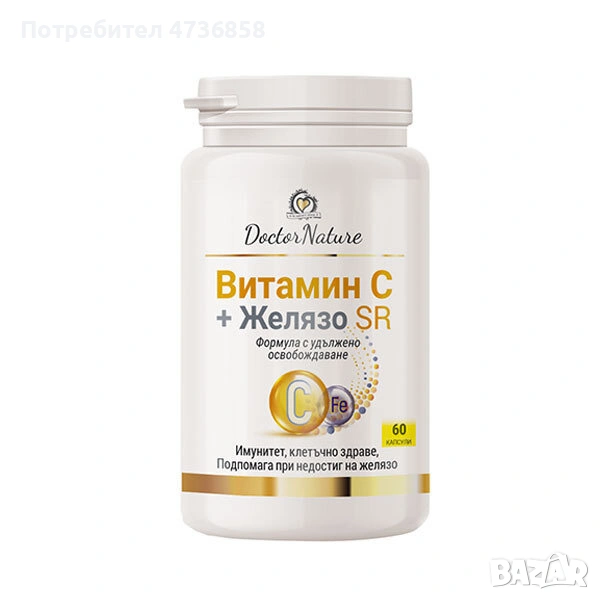 Dr. Nature Витамин C + желязо с удължено освобождаване, 60 капсули