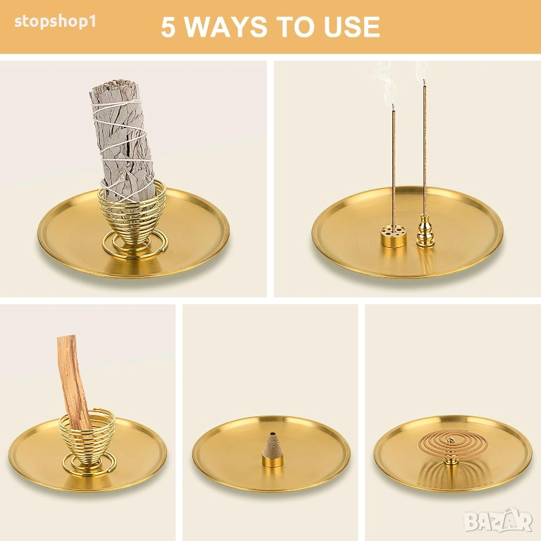 - Високо качество: Поставките за тамян са изработени от месинг, който е издръжлив за дълготрайна употреба. Можете да направите своя собствена комбинация, този 5 в 1 поставка за тамян е подходящ за пало санто и салвия, тамянни пръчици и тамян на макара.