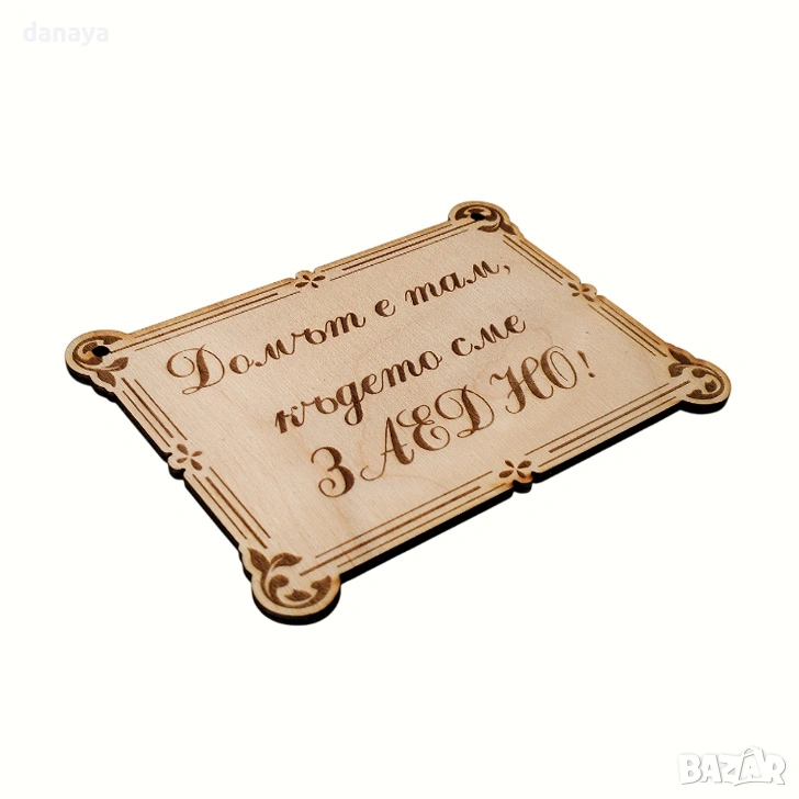 Дървена декоративна табелка „Домът е там, където сме заедно“ 12×9 см е емоционален акцент за всеки дом, който носи послание за близост, семейна топлина и споделени моменти. Класическият дизайн, съчетан с изгорен надпис върху естествено дърво, създава уютно и автентично излъчване, подходящо за различни интериорни пространства.