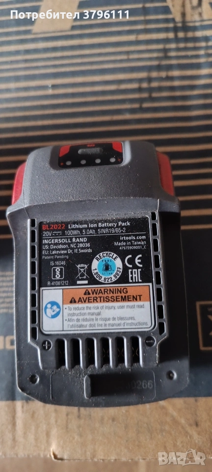 Батерия Ingersoll rand 20v → Обява 53608210