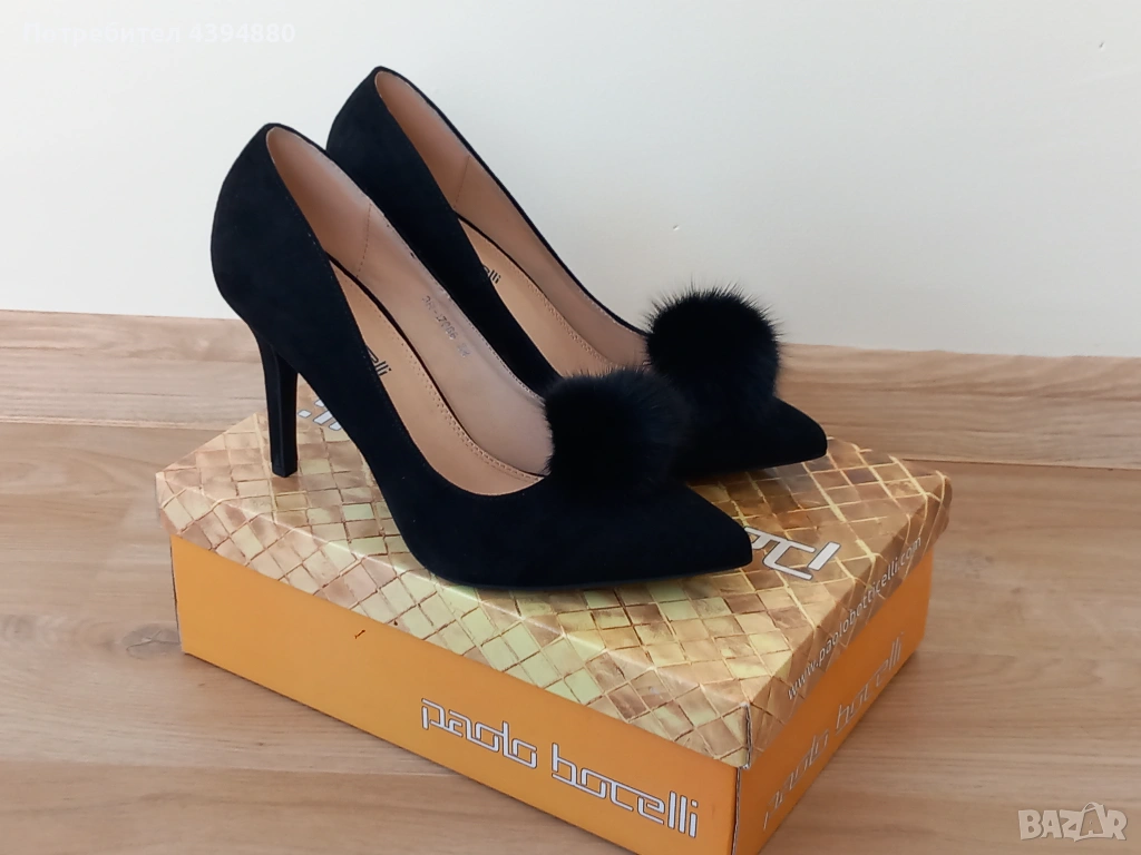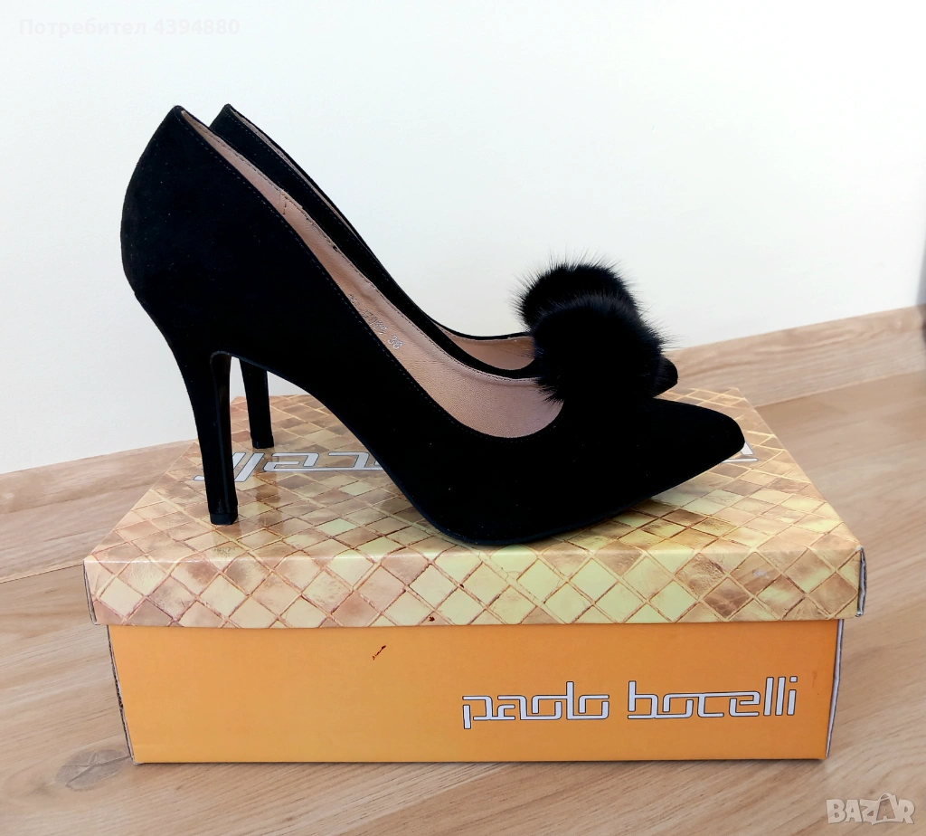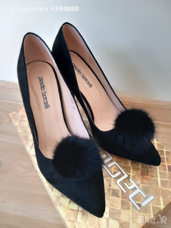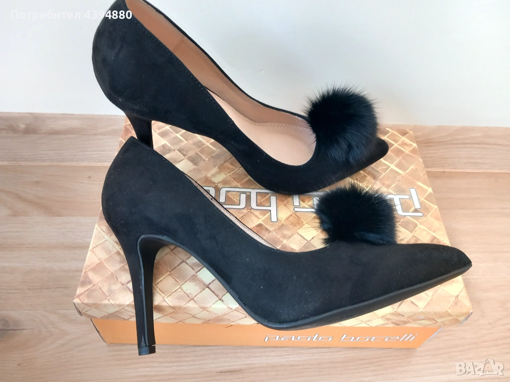 Нови стилни дамски обувки в черен цвят с марка Paollo Botichelli.Качествена и мека кожа от велур. Размер 38,и височина на тока 9 см.