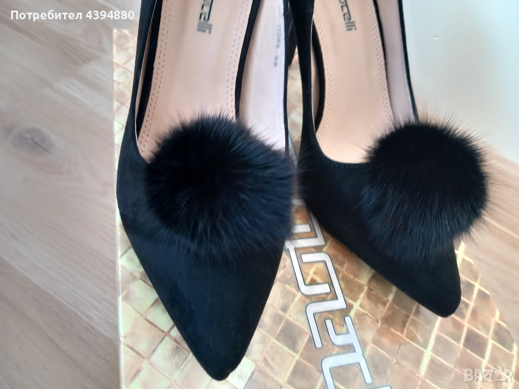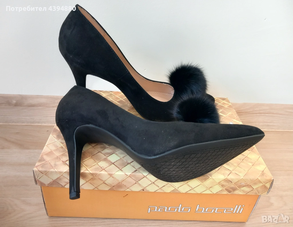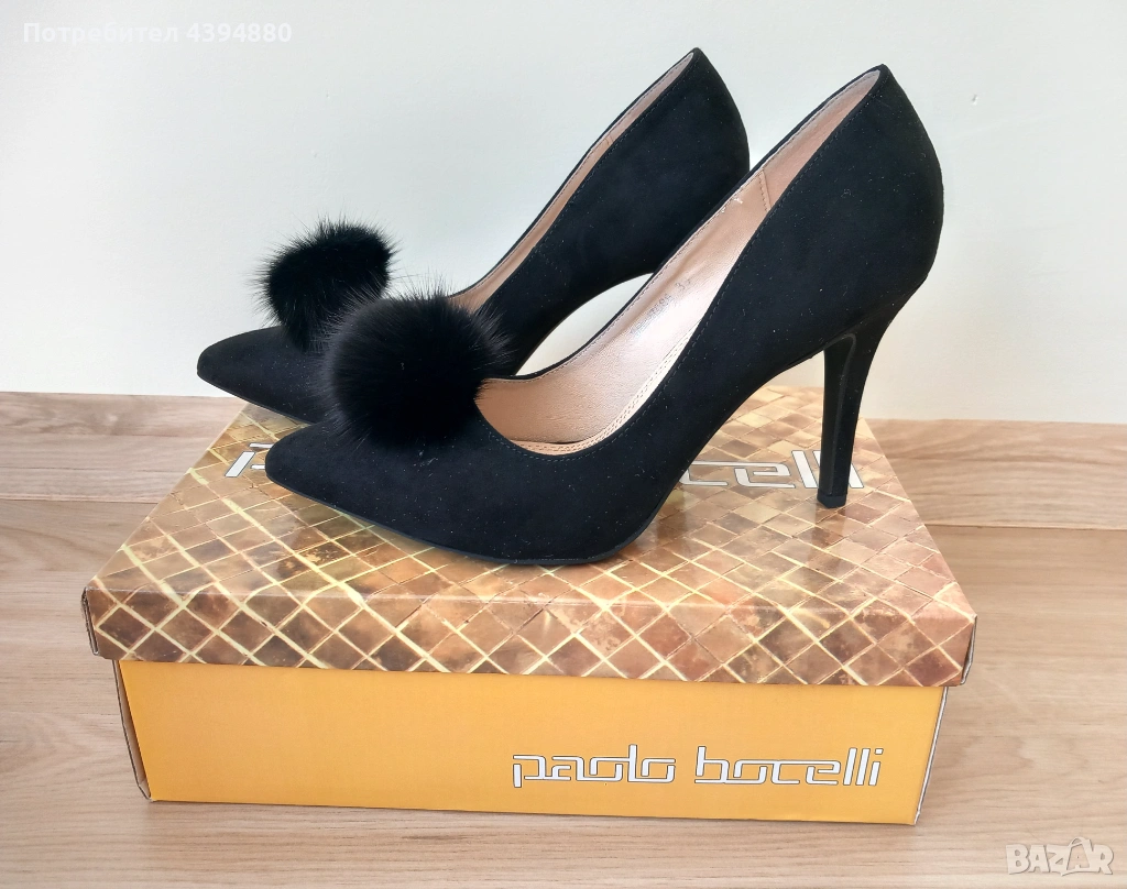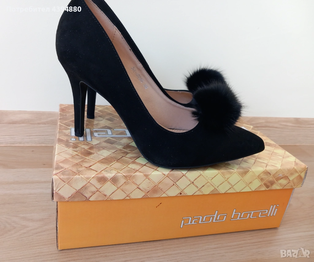 Нови стилни дамски обувки в черен цвят с марка Paollo Botichelli.Качествена и мека кожа от велур. Размер 38,и височина на тока 9 см.
