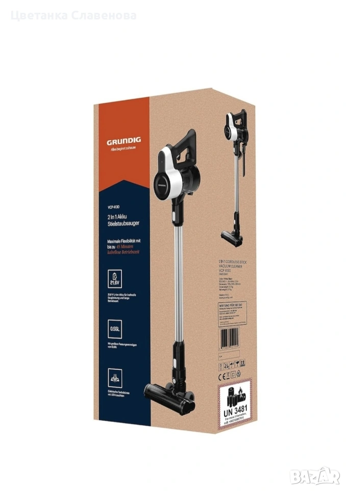 Безкабелна прахосмукачка Grundig VCP4130,2 скорости, капацитет 550 мл, безжична, 45 мин.работа