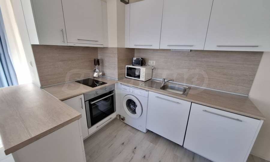 Жилището е част от комплекс с контролиран достъп и добре поддържани общи части. В близост ще откриете магазини, фитнес и голям супермаркет, а плажът е на пешеходно разстояние.