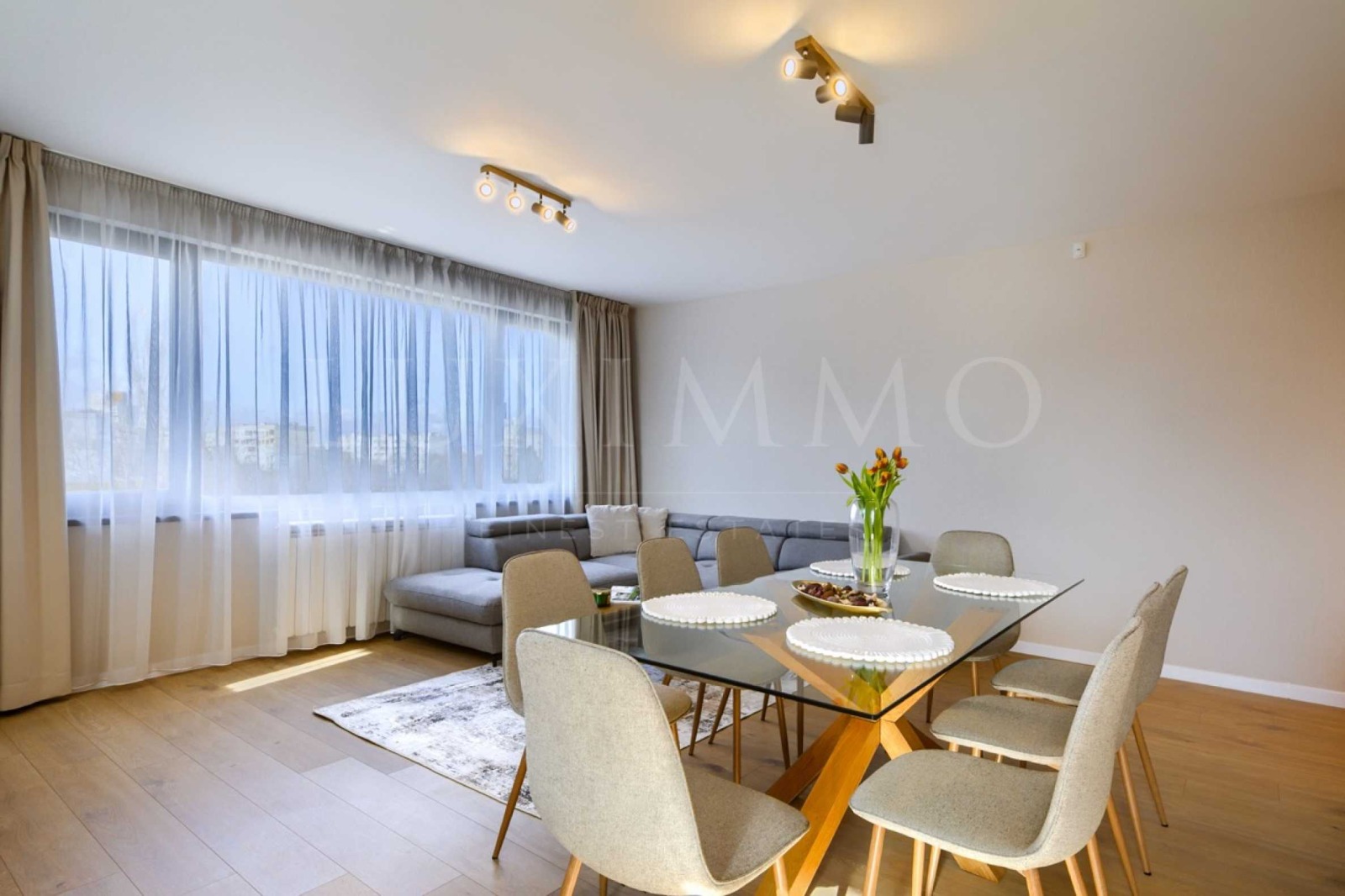 Светла и много просторна всекидневна с кухненски бокс стилно обзаведена с диван, трапезна маса и телевизор, а кухнята е снабдена с висококачествени уреди. С прекрасен балкон, на който има възможност за се поставят маса и столове.