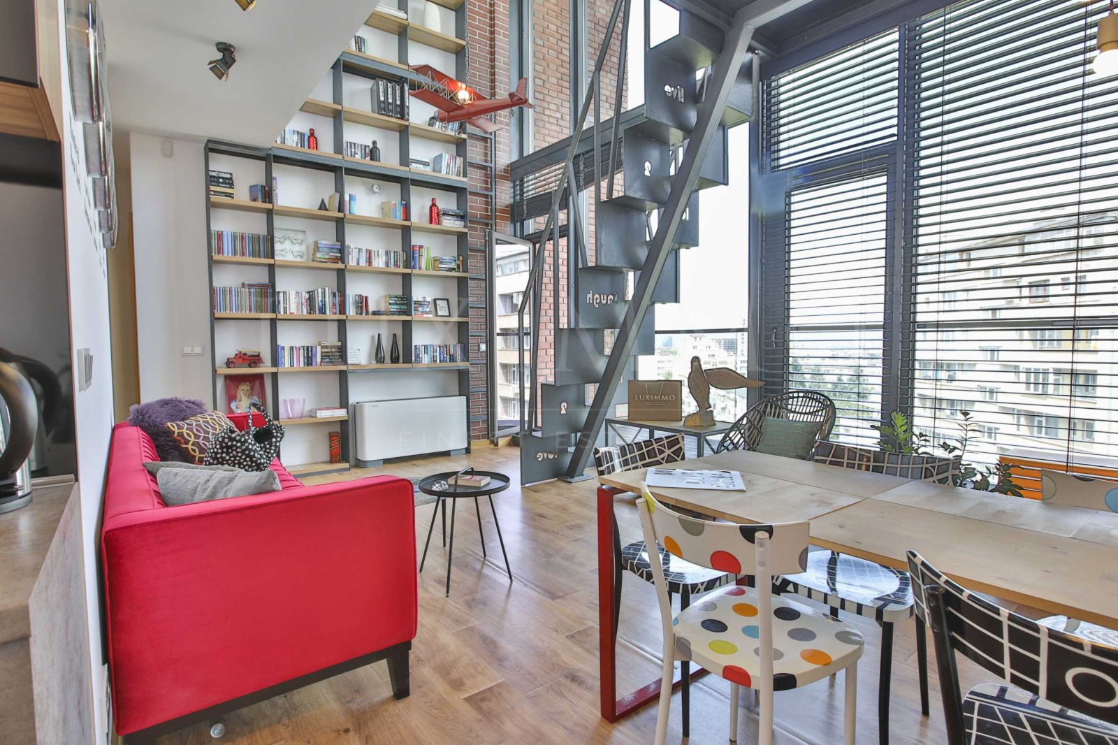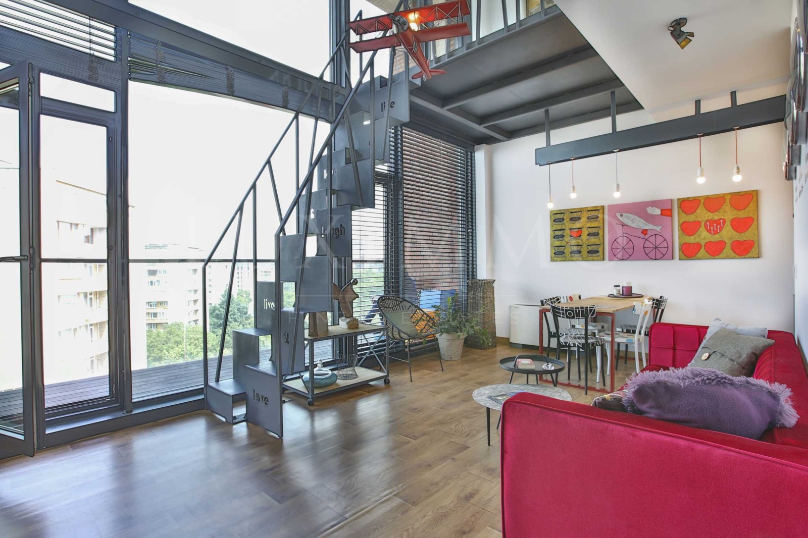 Представяме на Вашето внимание впечатляващ лофт в съвременна жилищна сграда Red Apple, която се намира срещу Южния парк и предлага прекрасни гледки към парка и възможности за разходки и забавления. Този дизайнерски апартамент предлага висок стандарт на живот и разнообразни дейности за един пълноценен социален живот. Високите тавани и огромни прозорци с невероятна гледка изпълват пространството с много въздух и чувство за свобода.