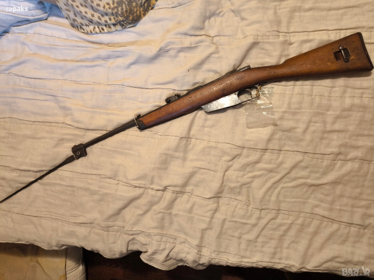 Прекрасна украса за стена. Деактивирана карабина Манлихер Каркано Обезопасени пшка Манлихер, Манлихера . НЕ Е РЕПЛИКА, Затвора и щика се движат на НЕ СТРЕЛЯ и не може отново да се научи да стреля. Трайно деактивирана с европейски сертификат за пред служба КОС. Необратимо е приведена да се ползва единствено за колекция, възстановки, украса и декорация . На свободна продажба, ако имате разрешението на тъща и съпруга. Не мога да продавам под себестойността и на глупави и обиждащи мен и продаваният артикул предложения отговарям по желание и с тон по мое лично усмотрение. Имам и други качествени реплики, но за тях цени в другите ми обяви