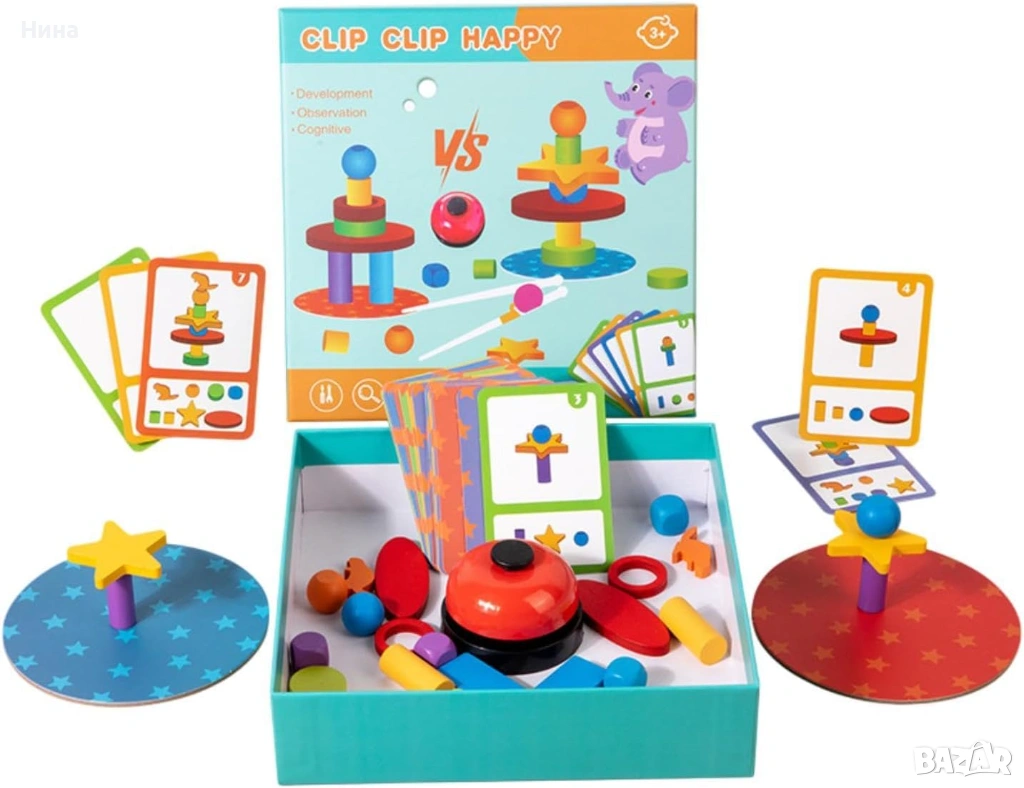Дървена образователна игра за когнитивни умения и наблюдателност Clip Clip Happy