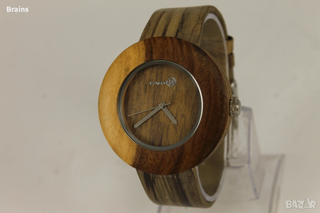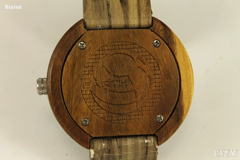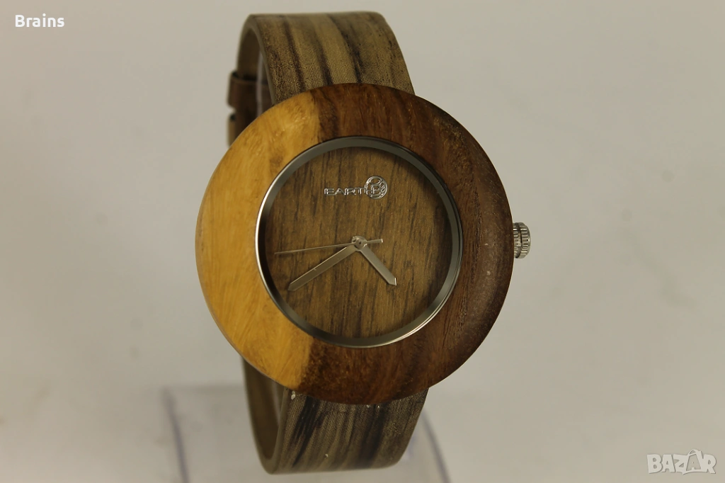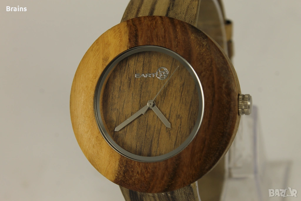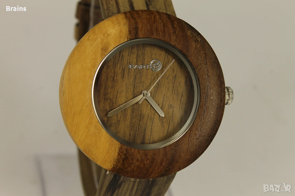 Оригинален дървен ръчен часовник на марката EARTH, който се отличава със своя екологичен и натурален дизайн.