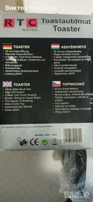 Тостер RTC Austria Aluline V – Алуминиев корпус + Приставка за питки, снимка 1 - Тостери - 53609163 Тостер RTC Austria Aluline V – Алуминиев корпус + Приставка за питки, снимка 2 - Тостери - 53609163 Тостер RTC Austria Aluline V – Алуминиев корпус + Приставка за питки, снимка 3 - Тостери - 53609163 1/3