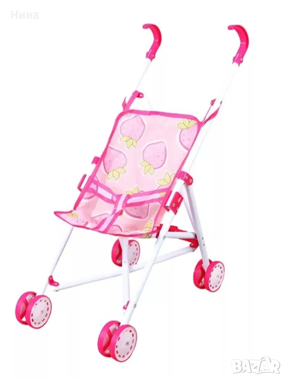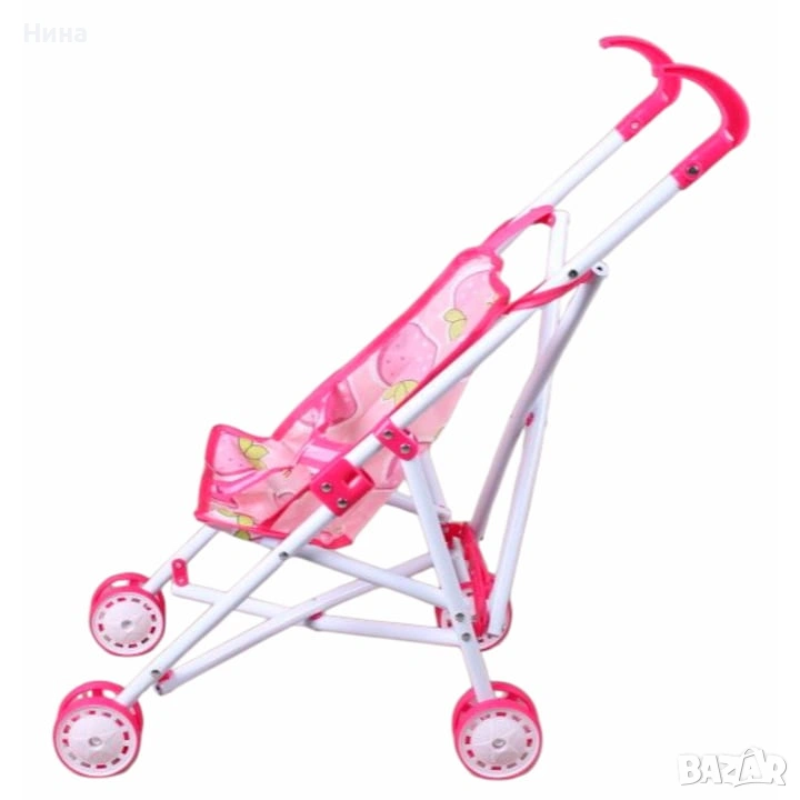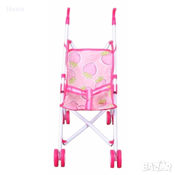 Сгъваема количка за кукла с метална конструкция и пластмасови колела. → Обява 53609168