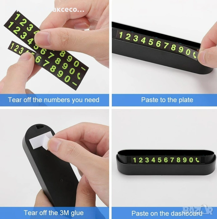 Ефектната паркинг табелка за автомобил е удобно решение, когато се налага временно да паркирате и да оставите контакт за връзка. Поставя се лесно върху таблото на автомобила и осигурява добра видимост на телефонния номер.