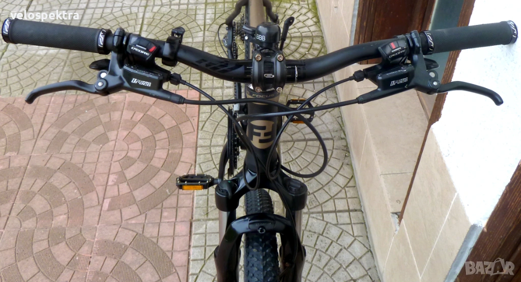27 скорости Шимано Деоре СЛХ , палцови команди 3х9 Шимано Деоре с дисплей. Две дискови хидравлични спирачки Тектро диск 180/160 .