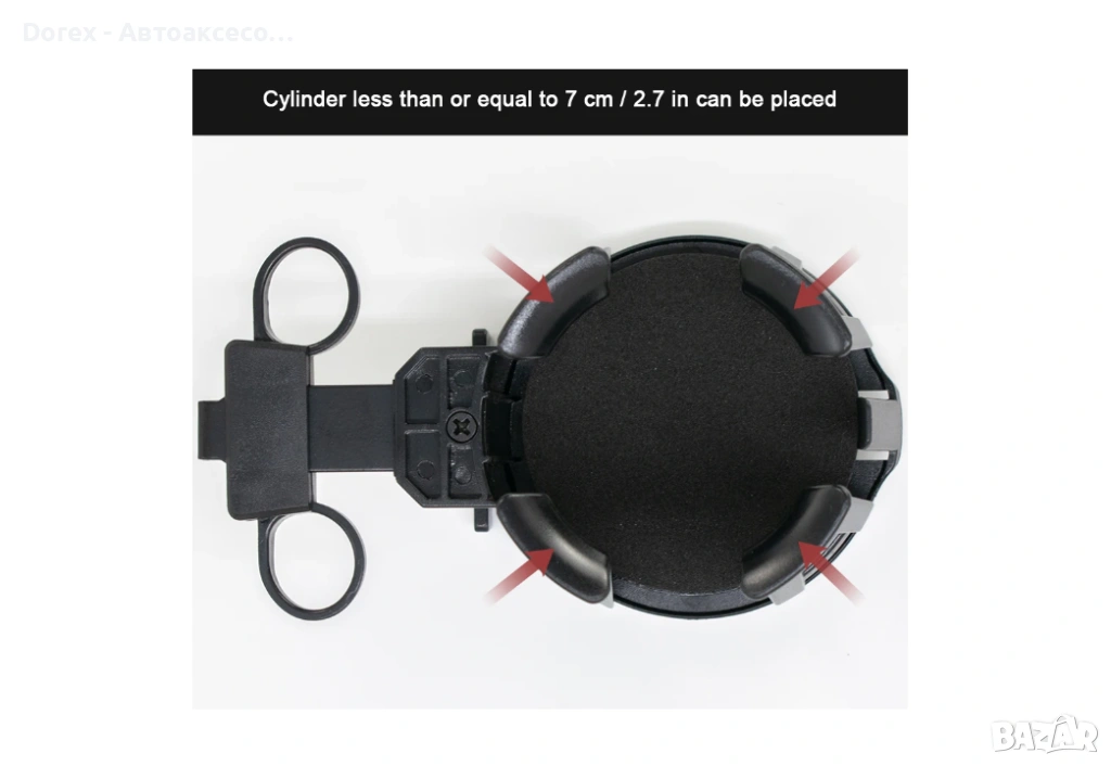 Моделът се монтира лесно към въздушната вентилационна решетка чрез щипка и е съвместим с повечето автомобили. Подходящ е за чаши и бутилки с диаметър до 70 мм.