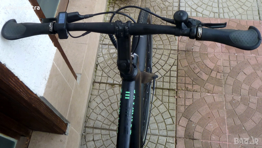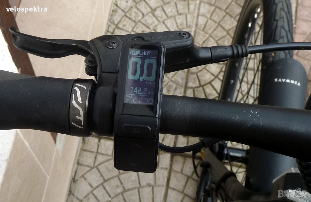 Двигател 250 вата 36 волта безчетков роторен в задната главина с Три степени на подпомагане. Батерия 36 волта интегрирана в рамката с зарядно . Дисплей ЛЕД . Фар към батерията..