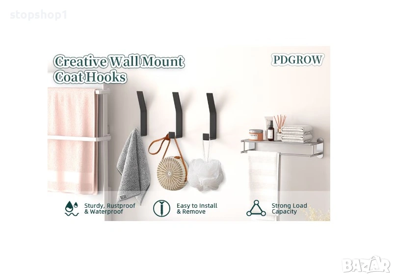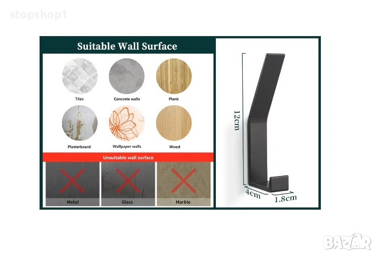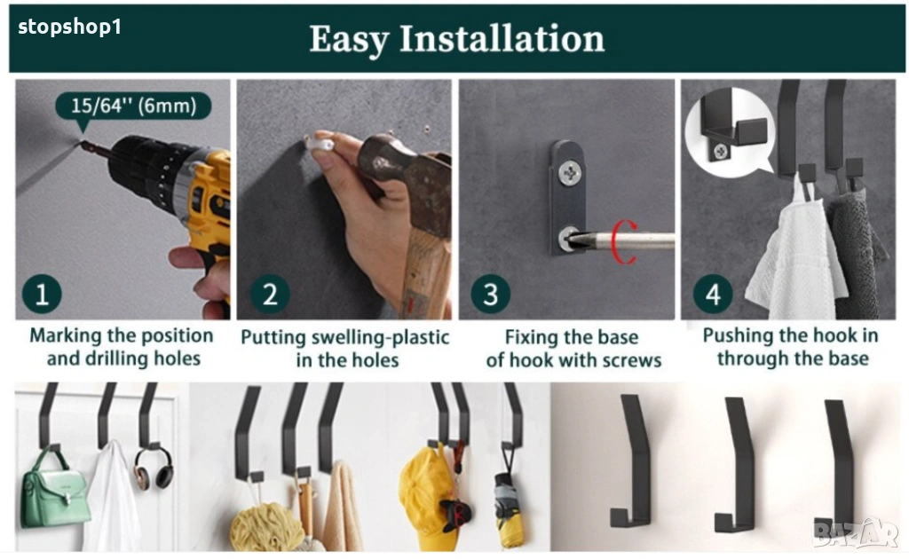 Спецификации: Цвят: черен Материал: алуминиева сплав Размери: 12,0*4,0*1,8 cm Тегло: 200g Включен пакет: 6x куки за кърпи за баня Описание: 1. ЛЕСНО И ГЪВНООБРАЗНО РЕШЕНИЕ, просто и функционално съхранение. кърпи, халати, палта, шапки, шапки, чанти или други неща чисти и подредени, освободете място и поддържайте нещата, за да останат чисти и подредени. 2. ВНИМАНИЕ ВНИМАНИЕ ДИЗАЙН И УДОБСТВО: С 12,0 см височина на колонната кука, можете лесно да закачите халати или кърпи, без да паднат, 4,0 см дълбочина на опорния прът за по-широки предмети, заоблените и изчистени ръбове няма да разкъсат тъканите, по-безопасно. за ежедневна организация. 3. ТВЪРДА И ЗДРАВА КОНСТРУКЦИЯ: Изработен от алуминиева сплав, с първокласно матово черно покритие за копринено усещане, няма да ръждясва лесно, да се лющи или обезцветява при нормални условия на употреба, дълготраен. 4. СПЕСТЯВАНЕ НА ПРОСТРАНСТВО: куката за кърпи е добра за спестяване на място и ви предлага чиста и удобна среда. А куката за кърпи със скрити винтове винаги е ориентирана хоризонтално за сигурно окачване. 5. ЛЕСНА И СИГУРНА ИНСТАЛАЦИЯ: Включен е необходимият монтажен хардуер за безпроблемна инсталация, издържа доста тегло без никакво движение след закрепване към стената, ако е правилно закотвен.
