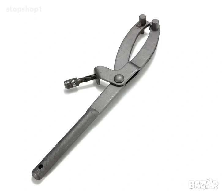 Ключ за съединител: Нашият ключ за съединител е подходящ за предни и задни зъбни колела на маховика на мотоциклета. Помага ви лесно да демонтирате или монтирате волана на мотоциклета. Това е много практичен аксесоар за мотоциклет. Регулируем дизайн: Инструментът за гаечен ключ е снабден с винт от едната страна и размерът на отвора на гаечния ключ може лесно да се регулира чрез просто завъртане на винта. Ключът на съединителя има максимален отвор от 120 mm и минимален отвор от 11 mm. В допълнение, щифтовете от двете страни на ключа за маховик са с различни размери и могат да се използват за различни размери волани на мотоциклети. ИЗДЪРЖЛИВ МАТЕРИАЛ: Този ключ със свободен ход е изработен от здрава въглеродна стомана, която е устойчива на корозия, ръжда, не се огъва лесно и има дълъг експлоатационен живот. Дизайнът на ключа за съединителя на маховика е ергономичен и лесен за хващане. Лесен за използване: гаечният ключ Y е много лесен и удобен за използване. Просто трябва да регулирате рамото до правилния размер с винта на ключа за съединителя на мотоциклета, след което да поставите колчето от горната част на гаечния ключ в съответния процеп на маховика.