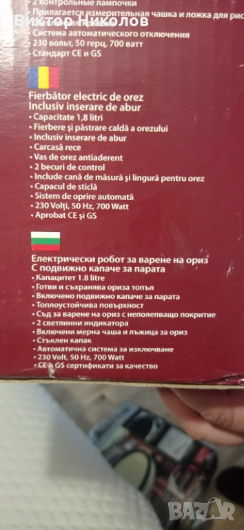 Продавам чисто нов, неизползван електрически уред за варене на ориз (оризоварка) Elta Germany, модел RK 112. Уредът е в оригиналната си опаковка, само разопакован за снимки. Изключително лесен за употреба, той гарантира перфектно сварен ориз всеки път, без загаряне.