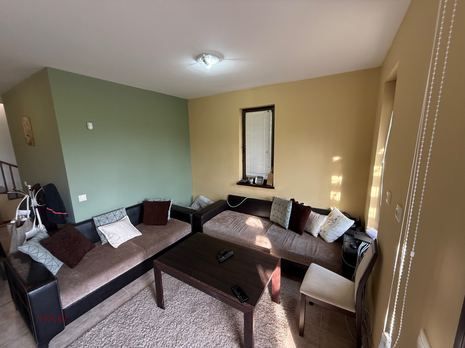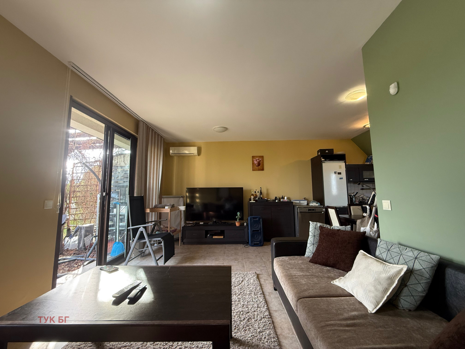 Първи етаж: Дневна/ трапезария с телевизор. Напълно оборудвана кухня с хладилник, вградена печка с 4 котлона, всички кухненски прибори и оборудване. Баня с тоалетна. Тройни плъзгащи се врати към вътрешния двор ( градина, предназначена за ползване само от собствениците).
