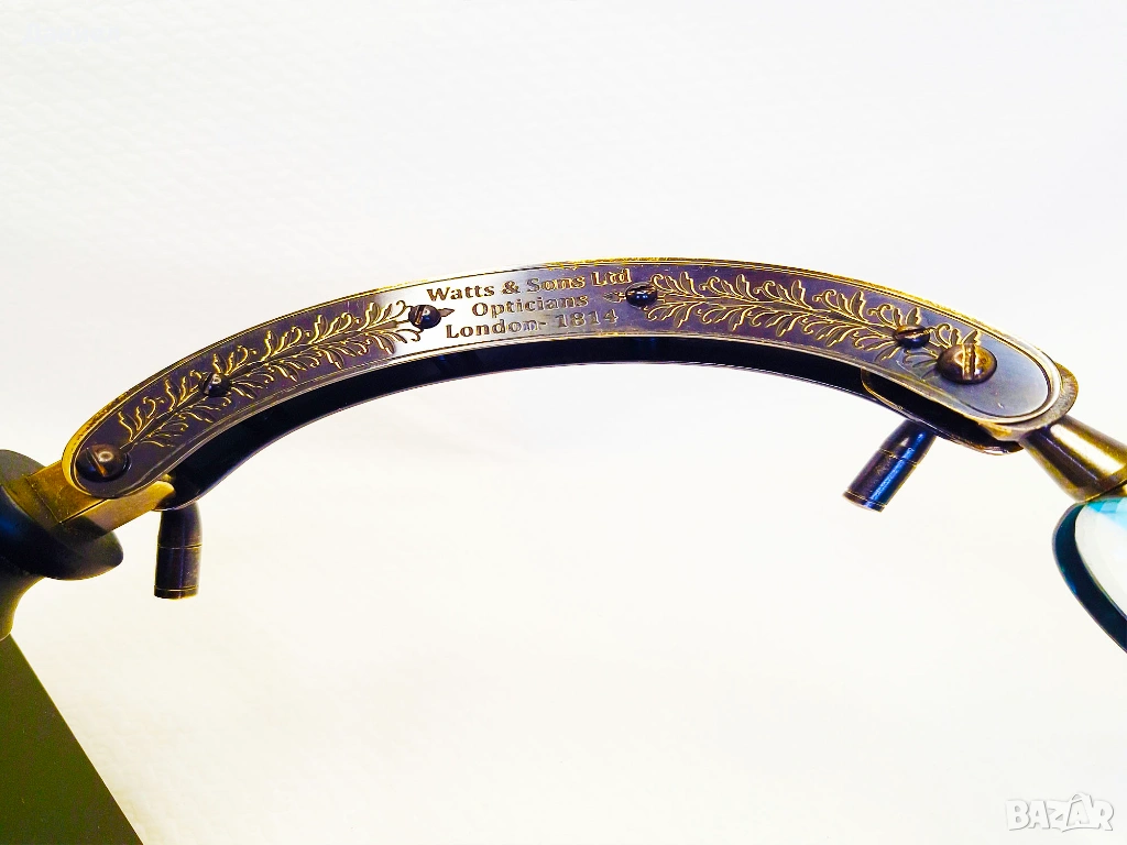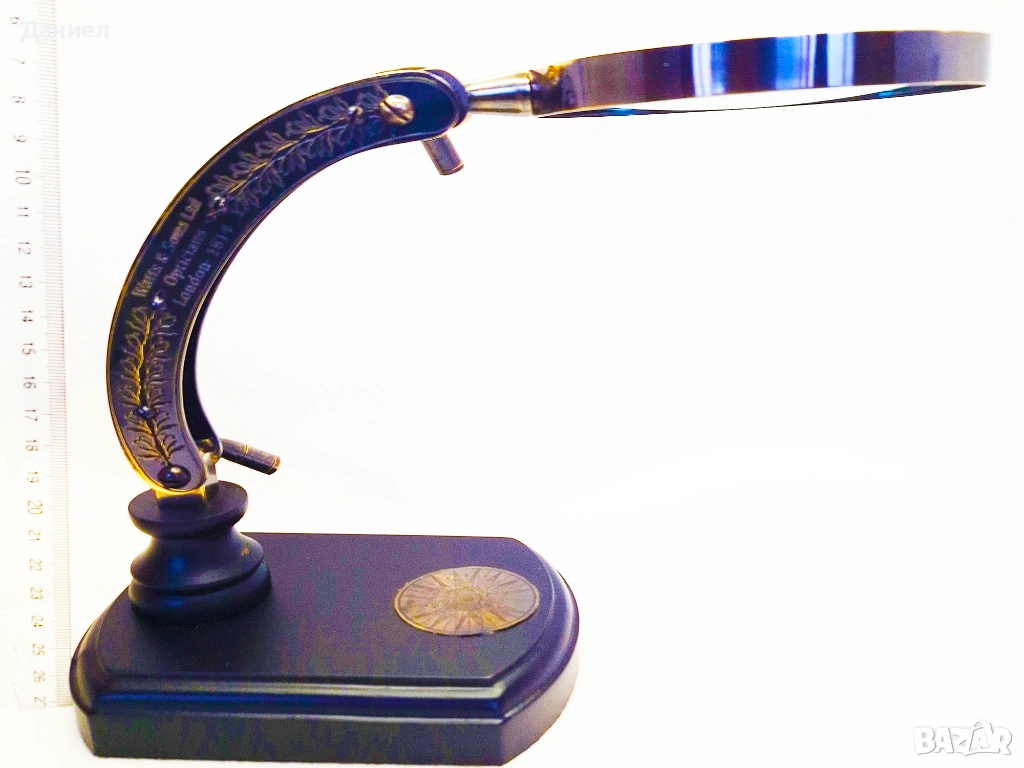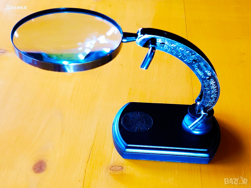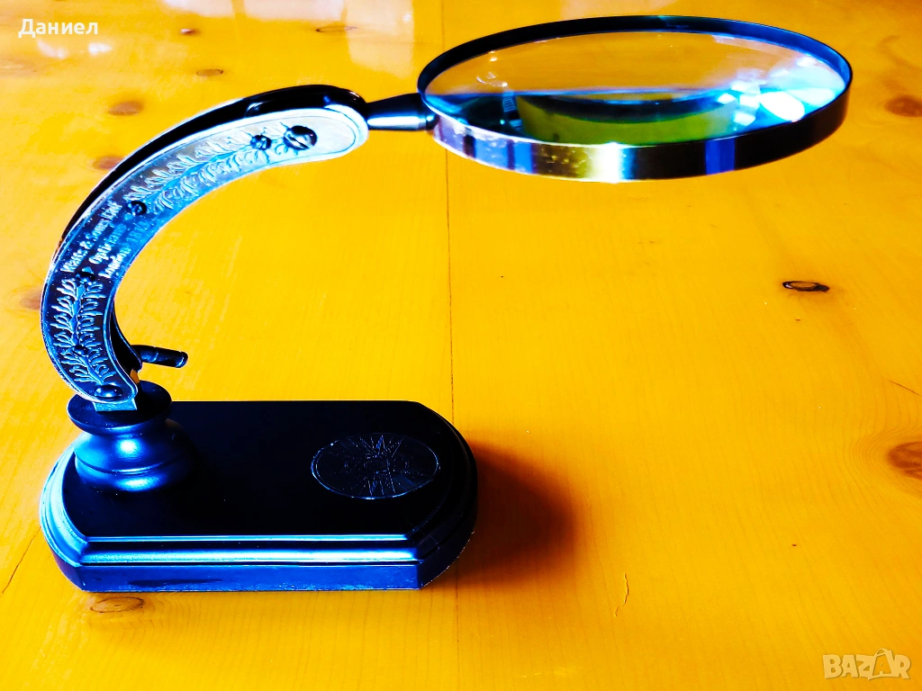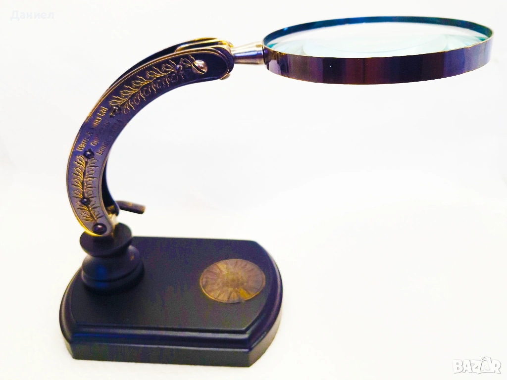Потопете се в атмосферата на аристократичен кабинет и класически изследователски дух с тази луксозна настолна лупа с увеличение X5. Съчетавайки благородния блясък на бронза, топлината на масивното дърво и прецизна оптика, този изящен аксесоар е не просто инструмент, а израз на стил, статус и внимание към детайла.Стабилната стойка с височина 23 см и лупа с диаметър 10 см създават внушително присъствие върху бюро, библиотека или конферентна маса. Увеличението 5X осигурява кристална яснота при разглеждане на фини детайли — идеална за документи, редки книги, колекционерски монети или ценни експонати.Този модел е вдъхновен от класическите европейски кабинети и библиотеките от XIX век — аксесоар, който подчертава авторитет и изискан вкус.