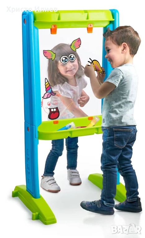 - Art&Fun Board е двустранна прозрачна художествена дъска със стикери за декорация; съдържа специални държачи за закрепване и рисуване с включените шаблони или с шаблоните, които желаете; можете да използвате дъската свободно и без шаблони. Включва 2 маркера и тава за игра на закрито и открито; насърчава когнитивните и фините двигателни умения и насърчава ролевите игри; препоръчва се за деца над 3 години. Тегло на продукта: 8 кг (приблизително)