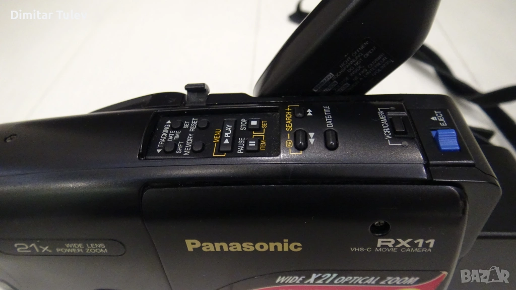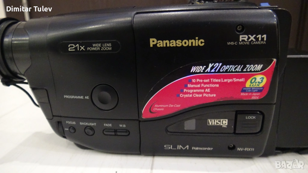 Продавам камера Panasonic RX 11 формат VHS C много запазена работеща,никога не е разглобявана и ремонтирана но по време на плей се чува въртенето на мотора явно вече се нуждае от профилактика.Към нея има чанта касета зарядно мрежов кабел 220 в. и кабел към камерата и батерия която вече не държи ток но може да се сменят елементите вътре и да се възстанови.Изпращам с Еконт или Спиди добре опакована.