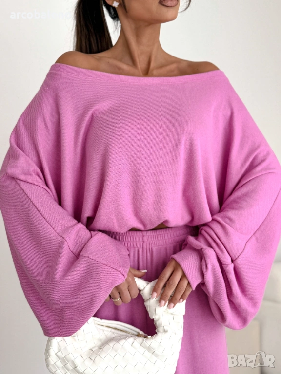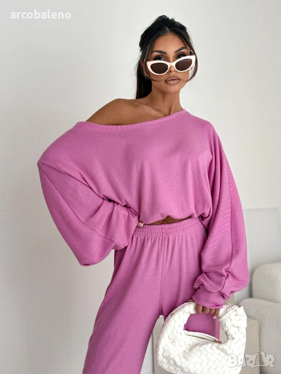 Супер удобен, ежедневен комплект, идеален за ежедневно носене. Свободният, голям суитшърт се спуска красиво, а еластичната талия и маншети гарантират комфорт и модерен външен вид. Чудесен избор за разходки, пазаруване и пътуване.