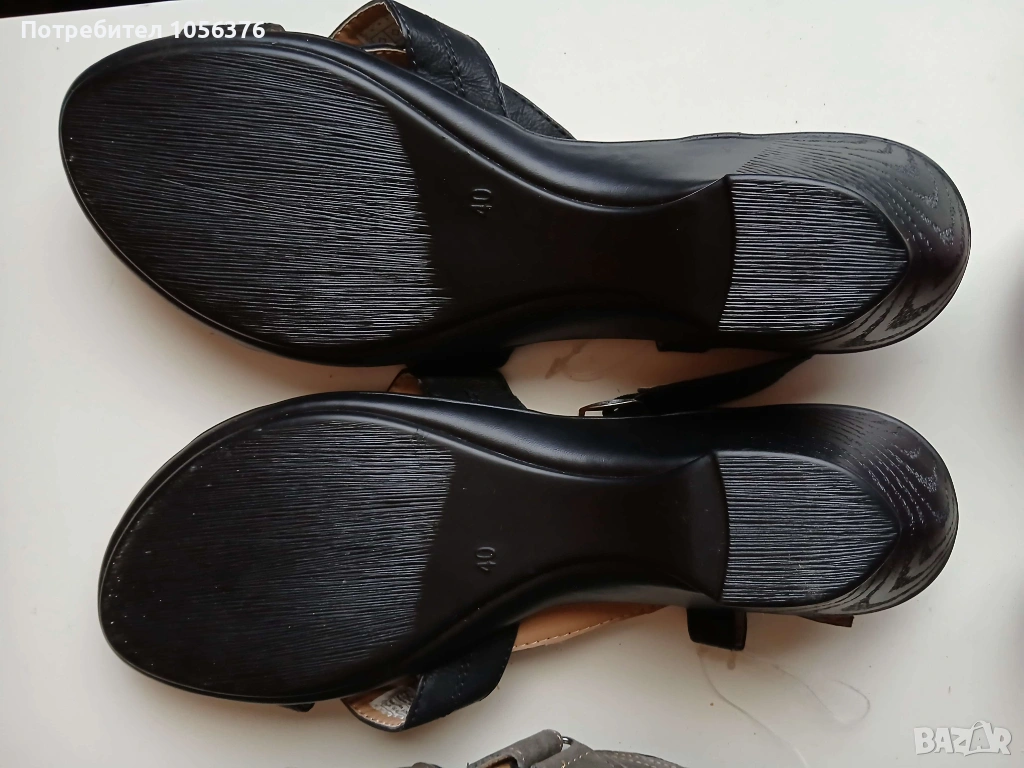 Ежедневни дамски кожени сандали, номер 40 (отговарят). Чисто нови са, не са пробвани, но липсва етикетът. Нямат забележки. Цена: 9€.