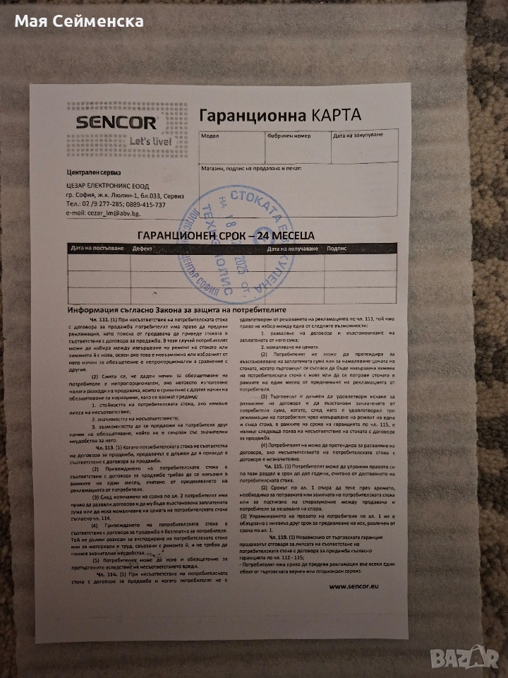 Дигиталната Wi-fi фоторамка SENCOR SDF 1091 W - чисто нова, с фабричното фолио на дисплея. Създадена за безпроблемно споделяне на снимки и видео в реално време. Идеална за подарък, както и за дома или офиса Ви! Характеристики: - 10.1 инча екран IPS Touch screen; - свързаност: чрез Wi-fi, слот за Micro SD карта (SDHC/ SDXC); - безплатен апп за телефони с iOS и Андроид - за мигновен трансфер на снимки и видео; - поддържа много езици; - 16 GB вътрешна памет; - висока резолюция на дисплея: 1280 на 800 пиксела; - широк визуален ъгъл; - възможност за регулиране нивото на яркост, и за интервала на slideshow-то; - възможност за хоризонтална или вертикална ориентация на дисплея; - с приставка за монтаж на стена; - вграден високоговорител с мощност 1W; - тегло: 0.52 кг.; - с включена 2 години гаранция от Технополис София: до 18.12.2027 г.; - лично предаване за град Пловдив или изпращане до избран от Вас офис на Еконт в страната.