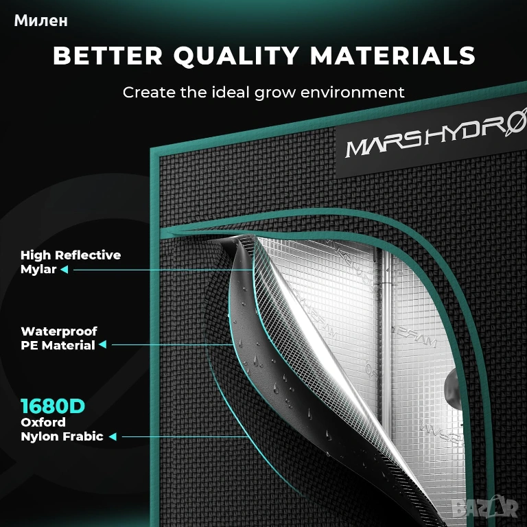 Палатка за отглеждане MARS HYDRO 100x100x180 см → Обява 53610737