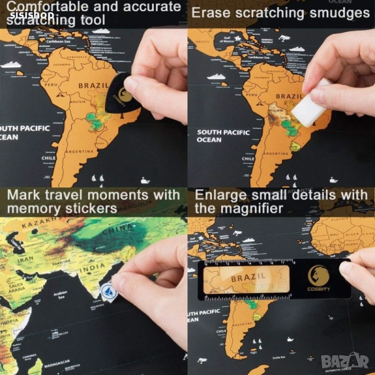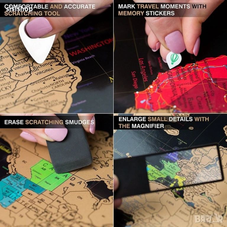 Скреч карта на света Deluxe: Най-добрият подарък за откриватели (XXL размер и детайлен дизайн) 1079