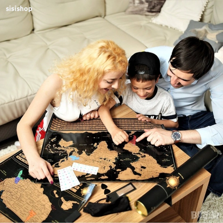 Подари целия свят в една кутия! Версията „Делукс“ се отличава с по-плътно покритие, по-висока детайлност на държавите и добавени географски детайли като острови и морски течения. Пристига в елегантен защитен тубус, готов за подаряване. Това е перфектният начин да мотивираш любим човек да изследва непознатото или да отпразнуваш магията на пътуването по един модерен и интерактивен начин.