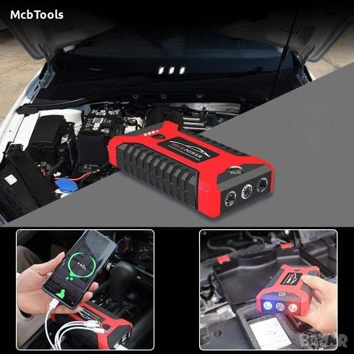 Мултифункционален автомобилен стартер Jump Starter 99800mAh, 12V, Максимален ток 600A с компресор