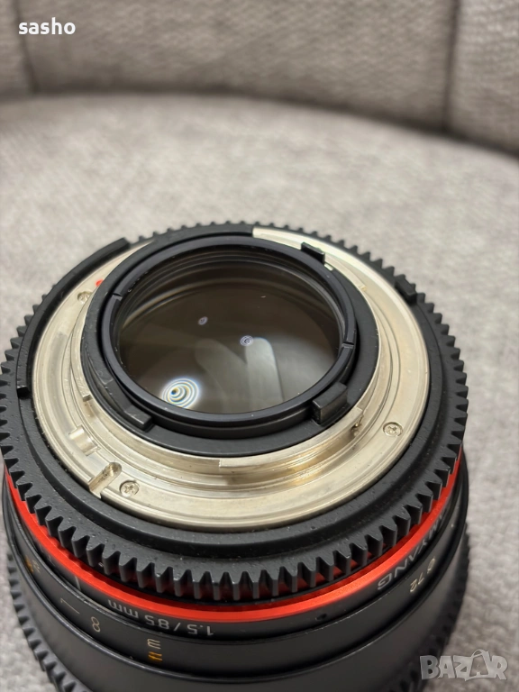 Продавам Samyang 85mm T1.5 (кино версията) за Nikon F байонет. Обективът е в отлично състояние, практически неразличим от нов. Ползван е много малко и винаги с внимание – лещите са перфектни, без прашинки, драскотини или други проблеми.