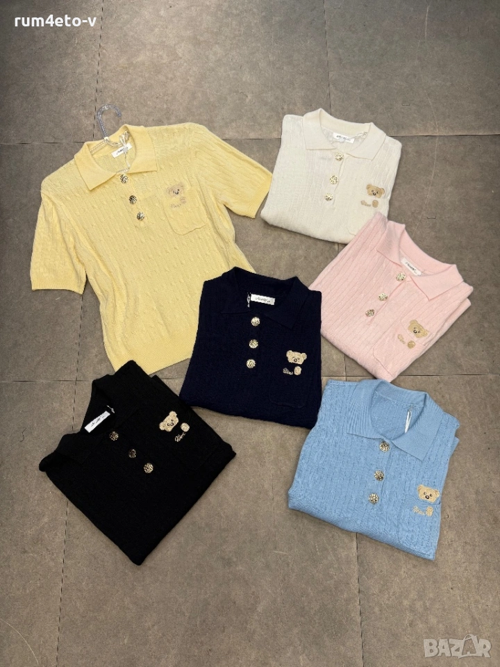 Много фен пуловер от вискоза с бродирани мечета. Различни цветове