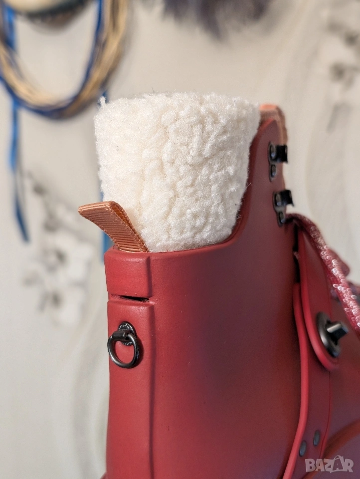Материал: Изработени са от червена гума (каучук) с текстилни детайли.