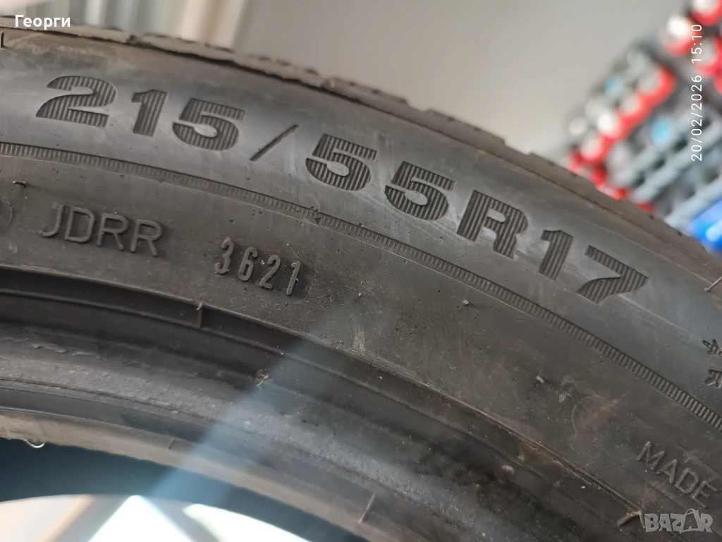 2бр. Dunlop,215/55/17 ДОТ 3621, 9mm грайфер, цената е за 1бр. Гумите са перфектни, без забележки, проверени са машинно за кривини, балони! Разполагаме с всякакъв размер нова и втора употреба гуми от 14-22 цола за автомобил, джип и бус.