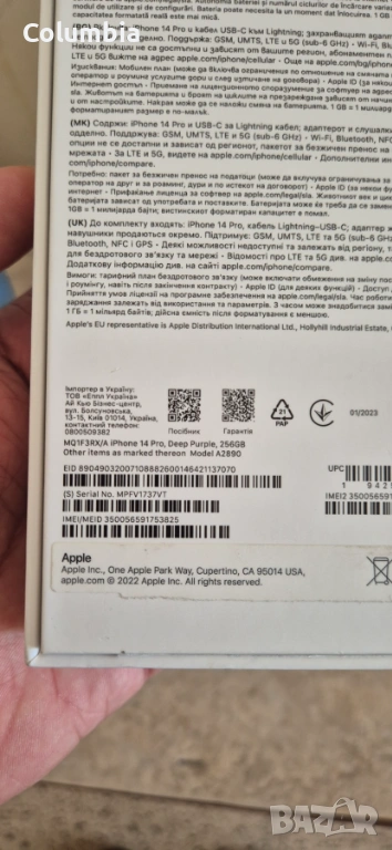 Личен телефон iPhone 14 pro 256gb, Deep Purple, първи собственик!