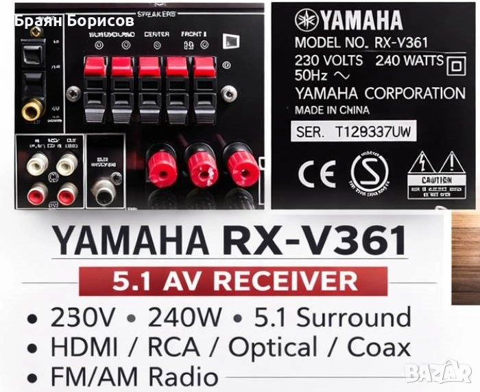 Yamaha RX-V361 5.1 AV Receiver, снимка 1 - Ресийвъри, усилватели, смесителни пултове - 53611883 Yamaha RX-V361 5.1 AV Receiver, снимка 2 - Ресийвъри, усилватели, смесителни пултове - 53611883 Yamaha RX-V361 5.1 AV Receiver, снимка 3 - Ресийвъри, усилватели, смесителни пултове - 53611883 1/3